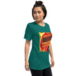 The tri-blend fabric creates a vintage, fitted look. And extreme durability makes this t-shirt withstand repeated washings and still remain super comfortable.